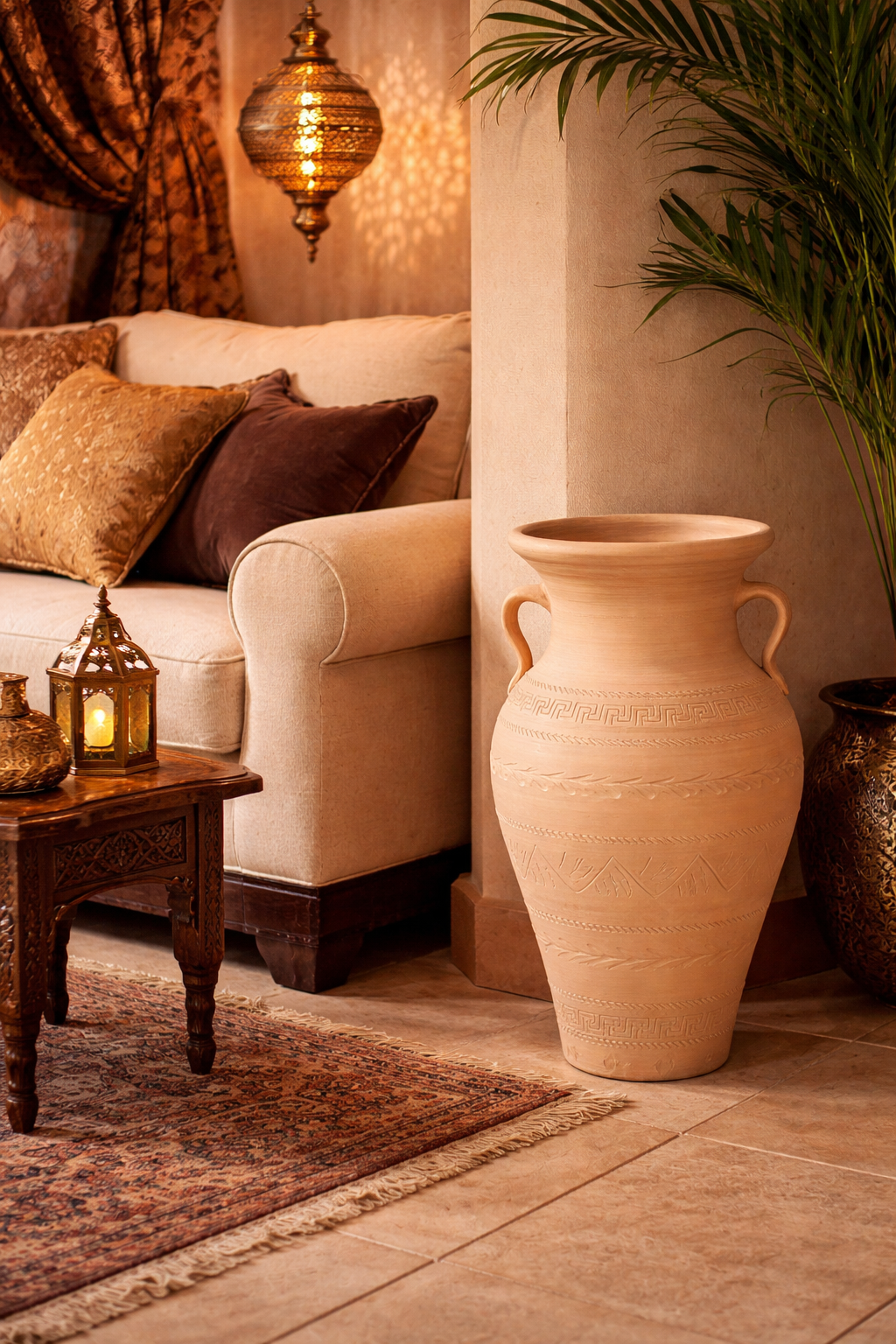 Pot en argile fait à la main avec une décoration et une sculpture spécifique.